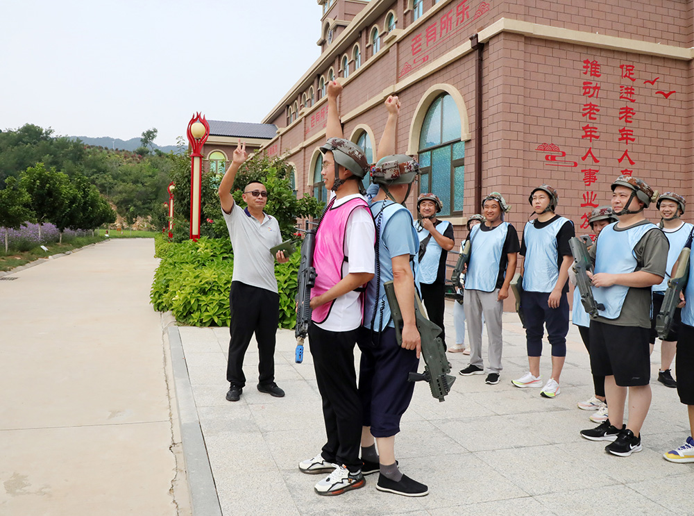 10时30分,CS团队野战活动在健康文化小镇激情上演。大家自由结合,组成“红队与蓝队” ,教官分发武器装备进入备战区。在每场模式的开展前,每队队员都悉心商讨战略,确定任务重点,制定团队计划,明确人员分工。野战中,可以看到一队队“士兵”在草地、楼房、掩体之间来回穿梭,大家跟据制定的计划,有序开展进攻、防守,步步为营,围点打援,进一步增强了团队的凝聚力和使命感。