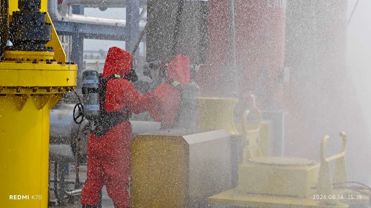 近日,为进一步提升液化品泊位应对危险化学品事故的能力,确保港口作业安全,山东裕龙港务有限公司成功举行了一场液氨装卸船泄露应急演练。此次演练模拟了液氨装卸过程中突发泄露的紧急情况,旨在检验应急预案的可行性和应急队伍的反应速度。