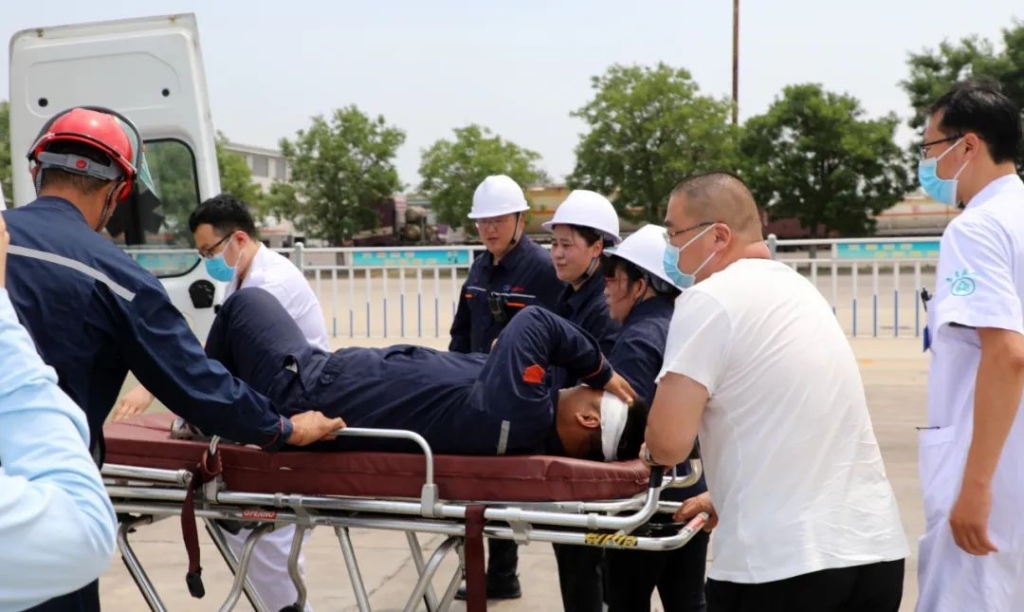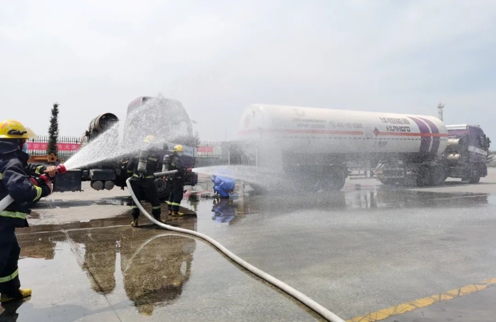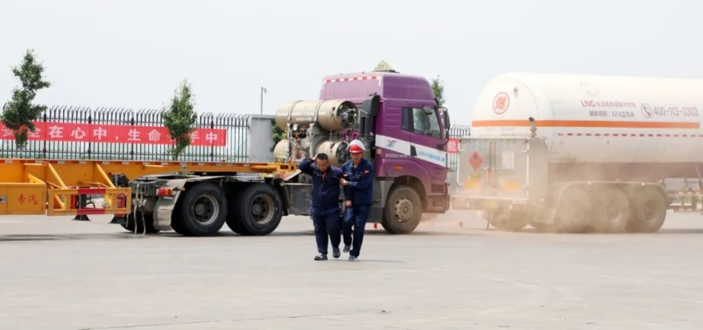 本次演练模拟了优化物流LNG运输车辆,在执行运输计划途中被后方车辆追尾造成运输的LNG泄漏事故。事故发生后,驾押人员立即采取现场应急处置措施,并拨打电话向消防、医疗以及公司进行事故报告。公司接到报警后,根据现场情况,总经理立即启动生产安全事故应急预案,各应急救援小组赶赴现场开展应急救援。最终,在龙口市消防二中队和南山养生谷肿瘤医院的协助下,抢险队伍完成了泄漏点处置和伤员救治工作,应急演练圆满结束。