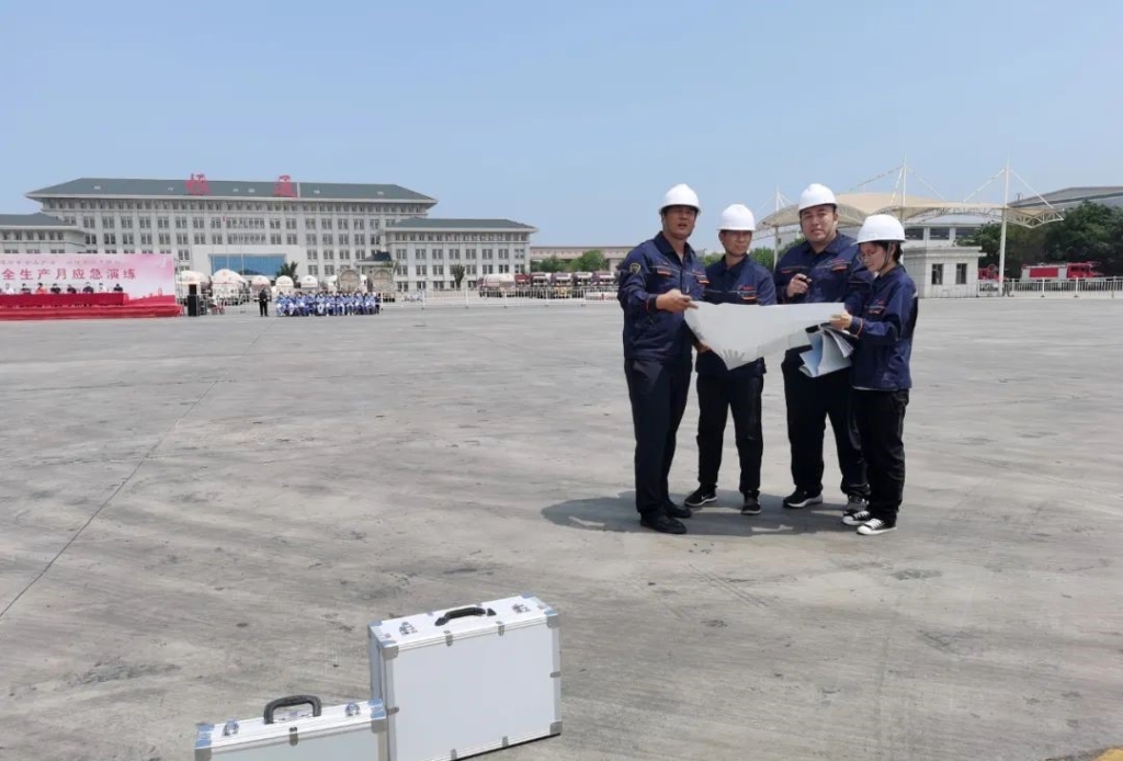 △抢险结束后,应急救援小组集合接受负责人的点评