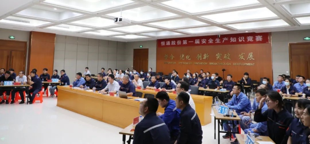 下午15时,恒通股份首届“安全知识竞赛”在第一会议室举行。董事长李洪波等公司领导及百余名员工现场观看了比赛。竞赛有6个代表队参赛,每队4人,分为必答题、抢答题、风险题三个环节。题目设置范围广、难度大,全面检测公司人员的安全知识和技能水平。比赛过程中,还设置了观众答题互动环节,现场员工踊跃参与,争先恐后的抢答题目,现场气氛热烈。